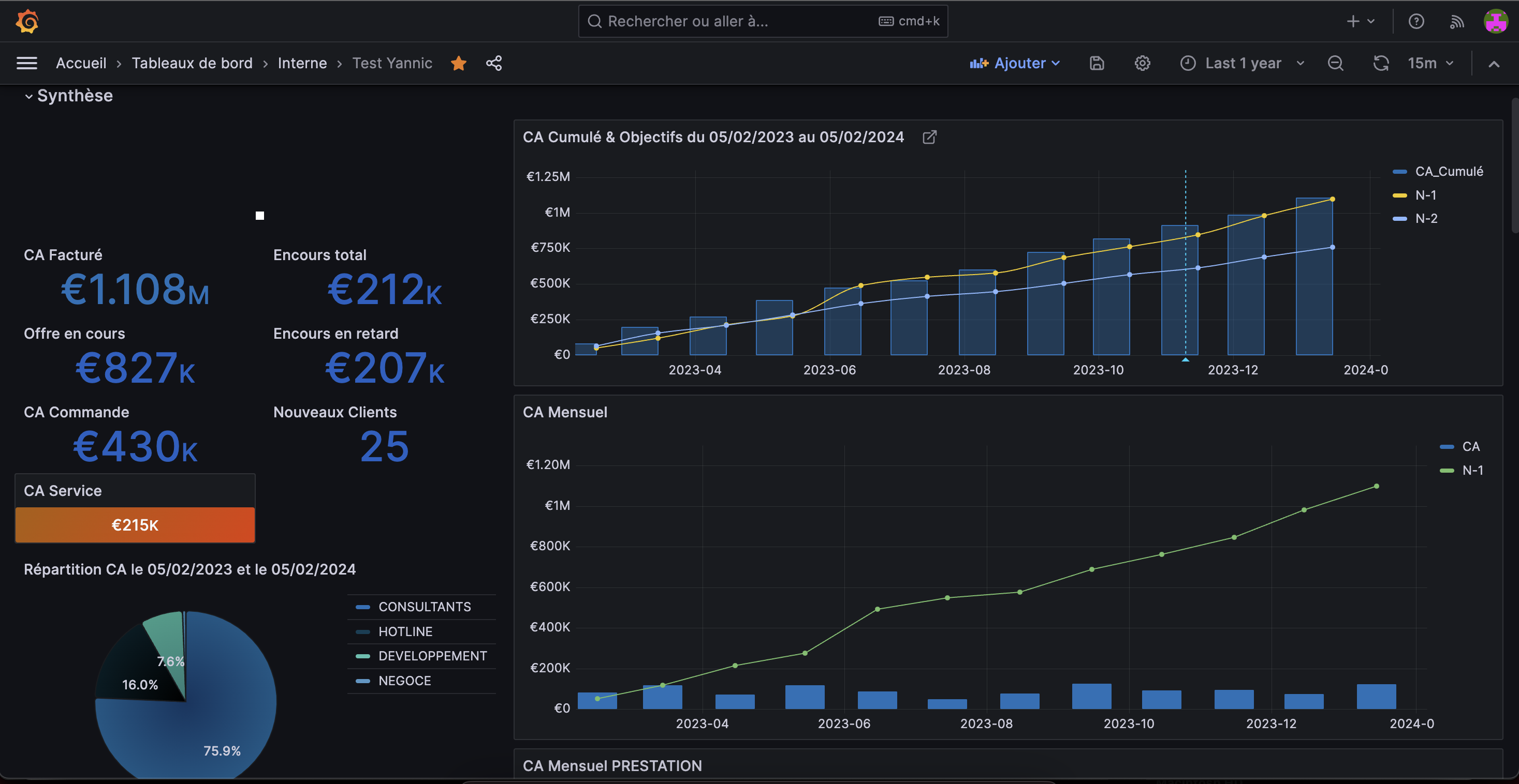 Grafana vous permet de piloter votre activité en suivant des indicateurs construits selon vos choix.